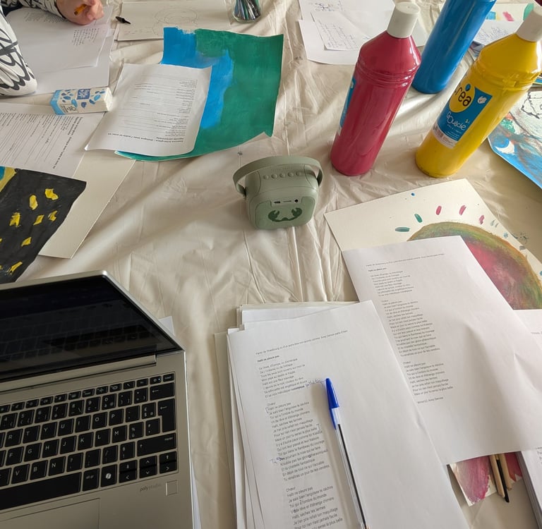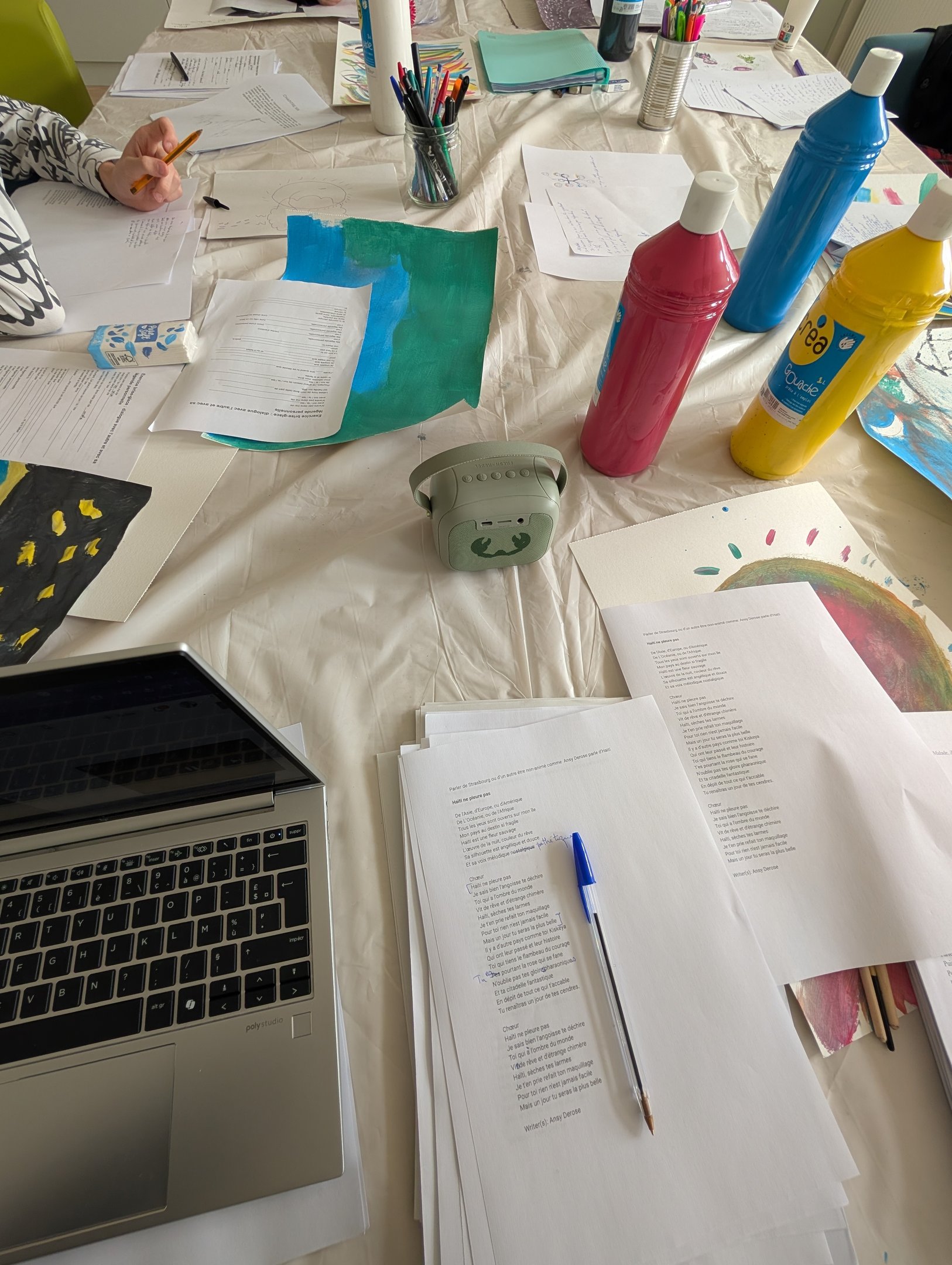 Ce texte collectif a été réalisé les 5 et 6 mars 2026 dans le cadre d’un projet thérapeutique mené par l’association NarAction, au sein du CAMPA (Centre d’Accueil Médico-Psychologique pour Adolescents), service des Hôpitaux Universitaires de Strasbourg. Parcours coanimé par Jacob Jean-Jacques et Bijou Mackenson. Cadrée en amont par la Dr Julie Rolling, cette intervention, qui a donné lieu à la production d'autres textes et d'autres formes d'expressions des adolescent.es, a bénéficié de l'accompagnement professionnel de Madame Sylvie Carré et de Madame Sandy Courtois, infirmières du service CAMPA. Il est dépourvu de signes de ponctuation exprès et fait une économie de lettres en majuscules, pour inviter les lecteurices à prendre la liberté de leur souffle et à en colorer la lecture expressive selon leur humeur du moment.